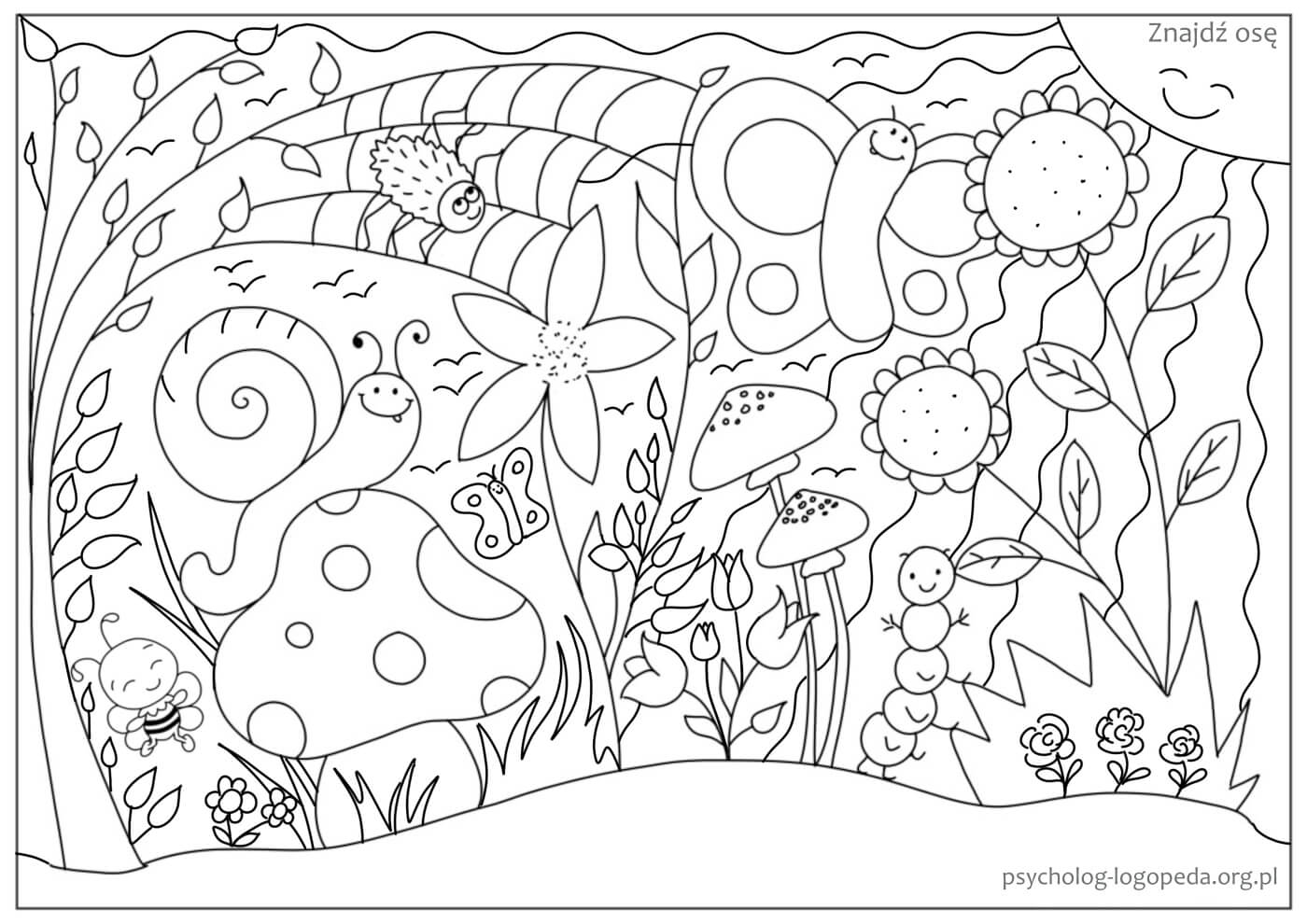 - na początek ćwiczenia spostrzegawczości w plenerze np. na łące, w lesie, w parku, podczas których szukamy wybranych obiektów, na przykład kasztanów, koniczyny, biedronek, ślimaków winniczków, grzybów z kapeluszem gąbczastym itp. Można wydrukować spacerownik i zaznaczyć, gdy coś się z niego zobaczy:
