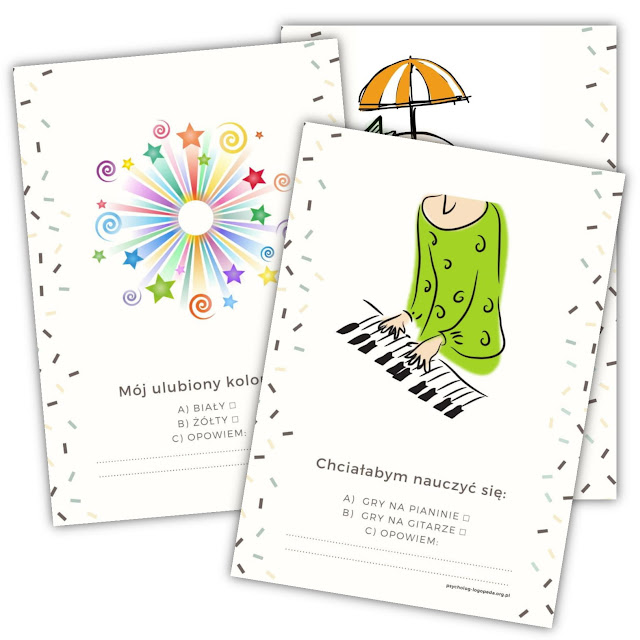 Karty można wykorzystać także przy treningu umiejętności społecznych (zmiana ról) - w postaci zachęceń: "A może teraz ty spróbuj zadać mi któreś pytanie, a ja odpowiem".