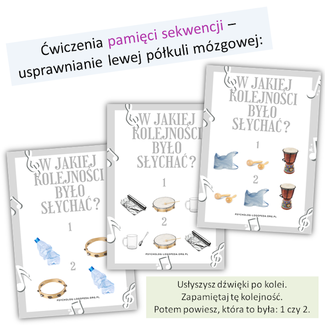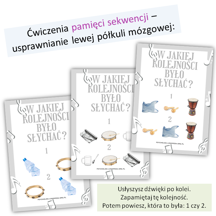 Sekwencje dźwiękowe - ćwiczenie lewej półkuli i pamięci słuchowej.