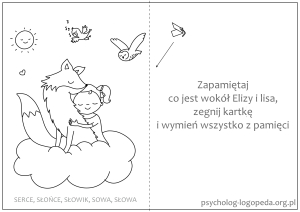 - ćwiczenia skanowania wzrokiem przestrzeni kartki i zapamiętywania lokalizacji wybranego wyrazu.