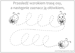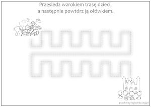 - ćwiczenia szlaczków i karty pracy rozwijające nawyk wodzenia wzrokiem w sposób zbliżony do procesu czytania - przykłady: