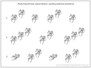 - trening rozpoczynający się od krótkich zdań polegający na liczeniu (może być początkowo na palcach) ilości słów,